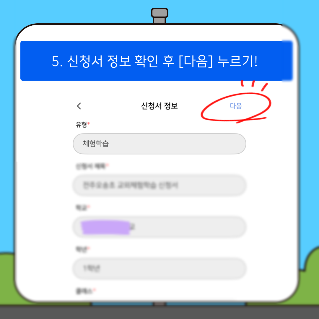 5. 신청서 정보 확인 후 [다음] 눌러주세요.