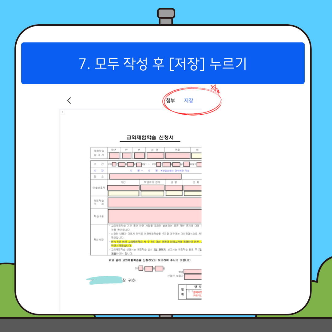 우리는 [교외체험학습 신청서]를 눌러주세요.