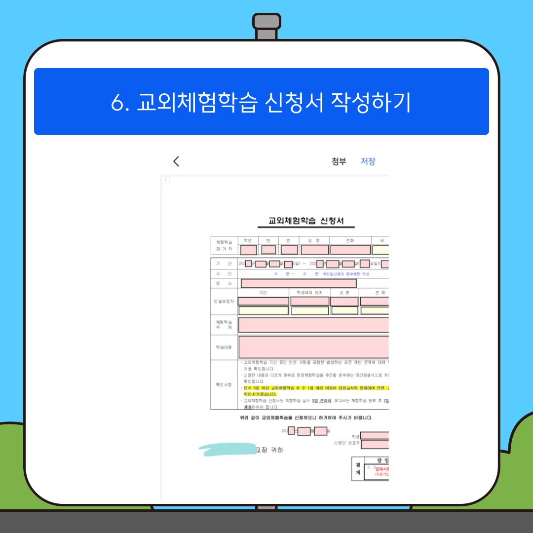 본격적으로 교외체험학습 신청서가 등장했습니다.